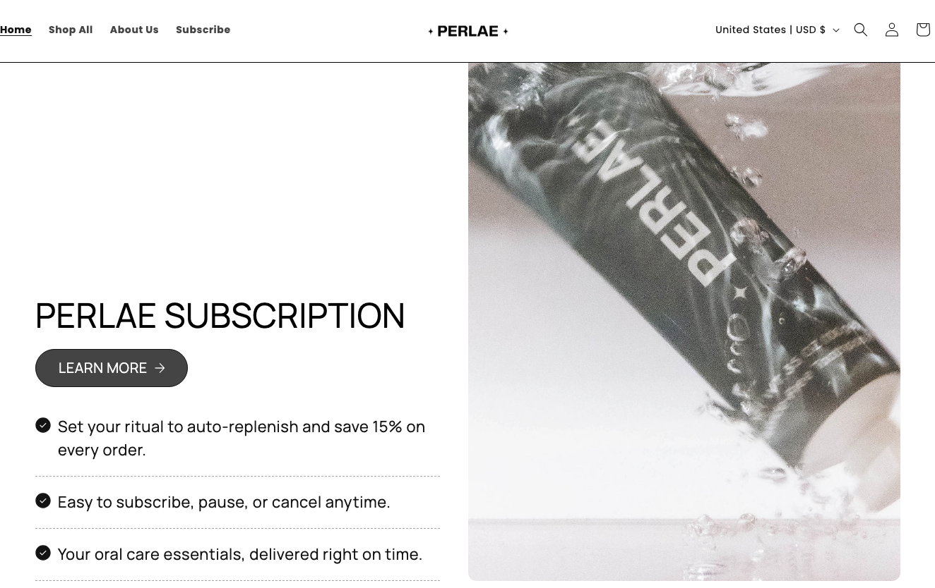 For example, Perlae addresses common consumer concerns about how its subscription works. It points out that subscribers receive 15% off on every order, can pause or cancel at any time, and that the packages are always delivered on time.
