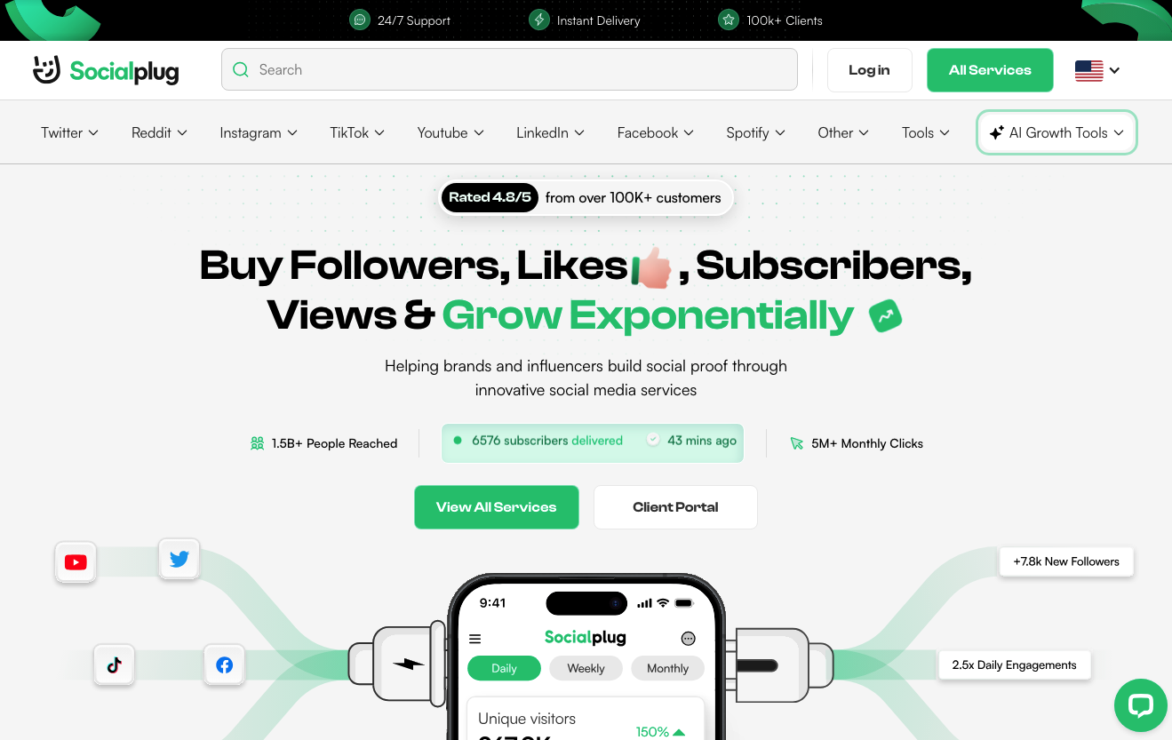 For instance, take a look at Socialplug, a marketplace for social media engagement. This business uses specific conversion outcomes to inspire potential customers to imagine the results they could accomplish by converting. Seeing that most of the brand’s target audience would benefit from thousands of likes, followers, and engagements, this strategy works marvelously in moving them closer to the purchase stage of the sales funnel and inspiring them to click the ‘Buy’ button.