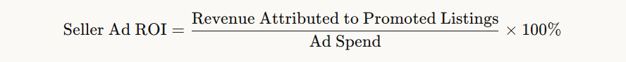 This is the most important metric for the seller side of your platform. If sellers cannot see a clear, credible ROI from their ad spend, your promoted listing product will churn regardless of how sophisticated your targeting infrastructure is. Platforms that expose transparent Seller Ad ROI dashboards — showing attributed clicks, attributed orders, and cost-per-acquisition — retain advertiser spend at significantly higher rates than those that only show impression counts.